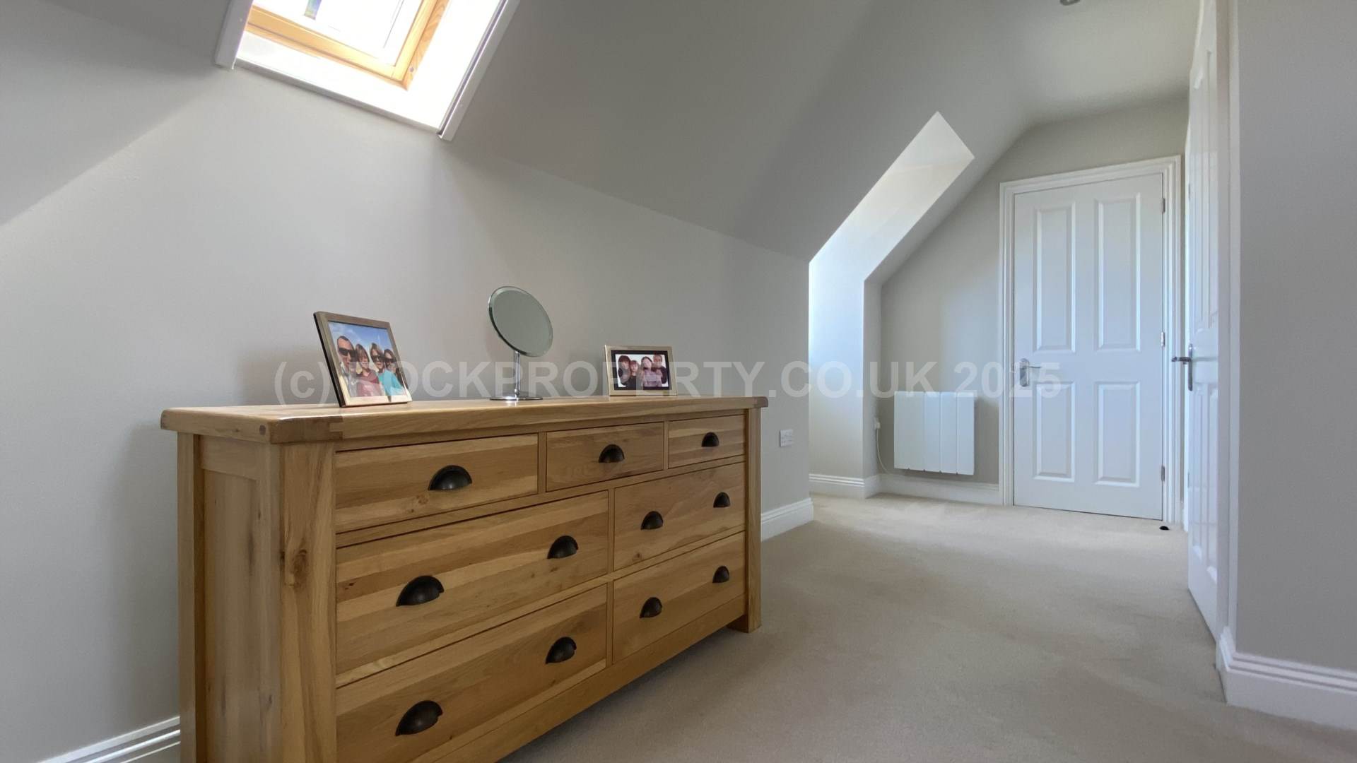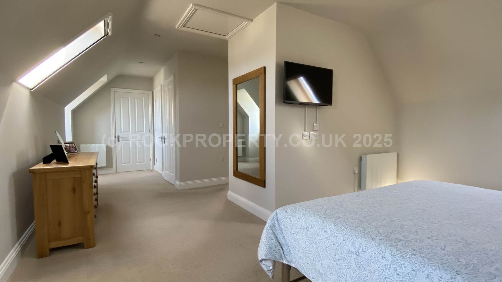 Door to en suite. Window overlooking front garden Two velux windows over looking both front and back gardens